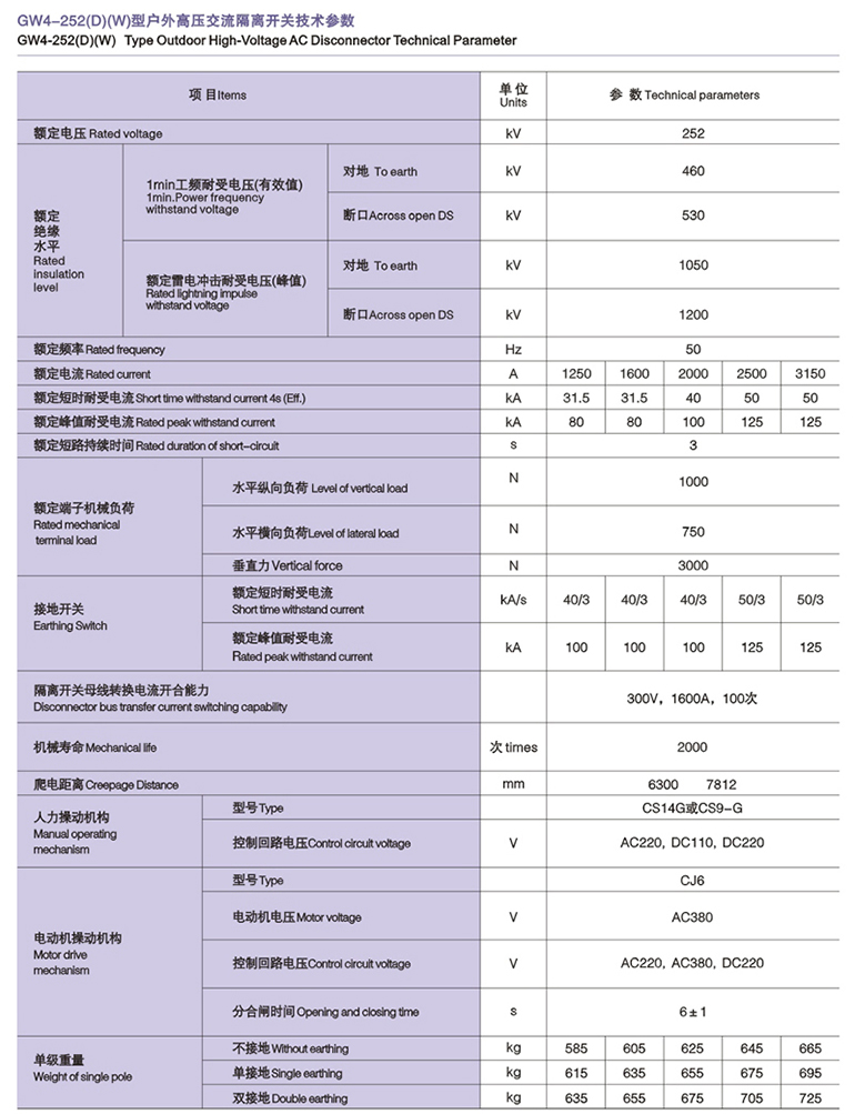 GW1-12G(D)户外高压隔离开关