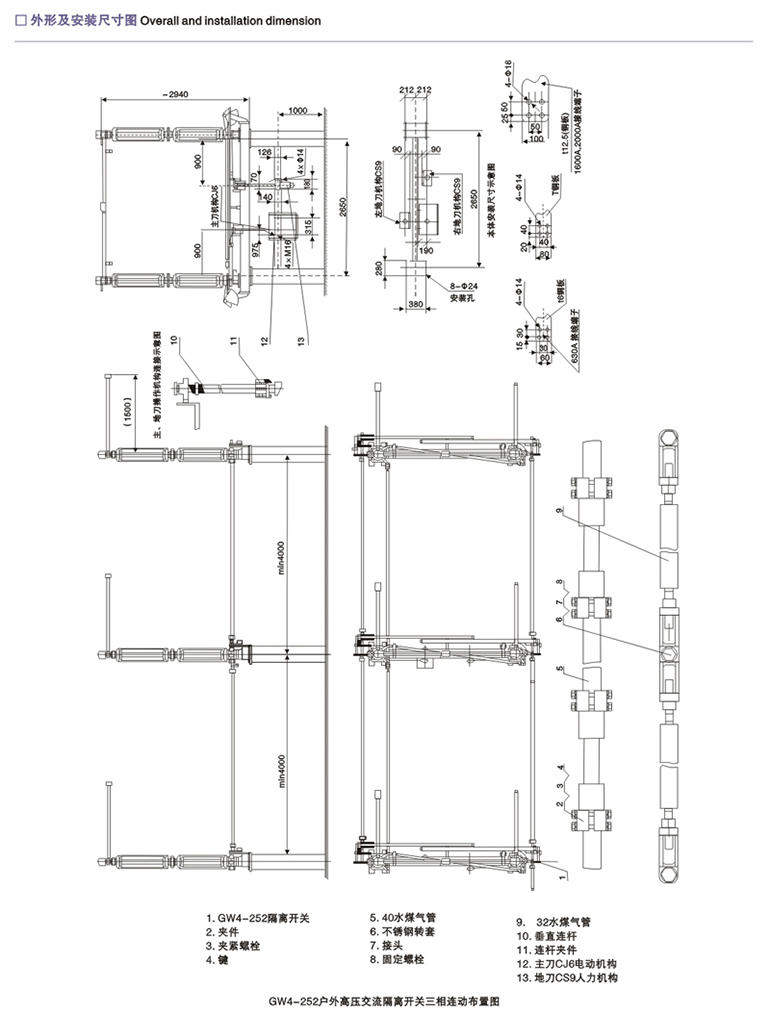 GW1-12G(组合式)户外高压隔离开关