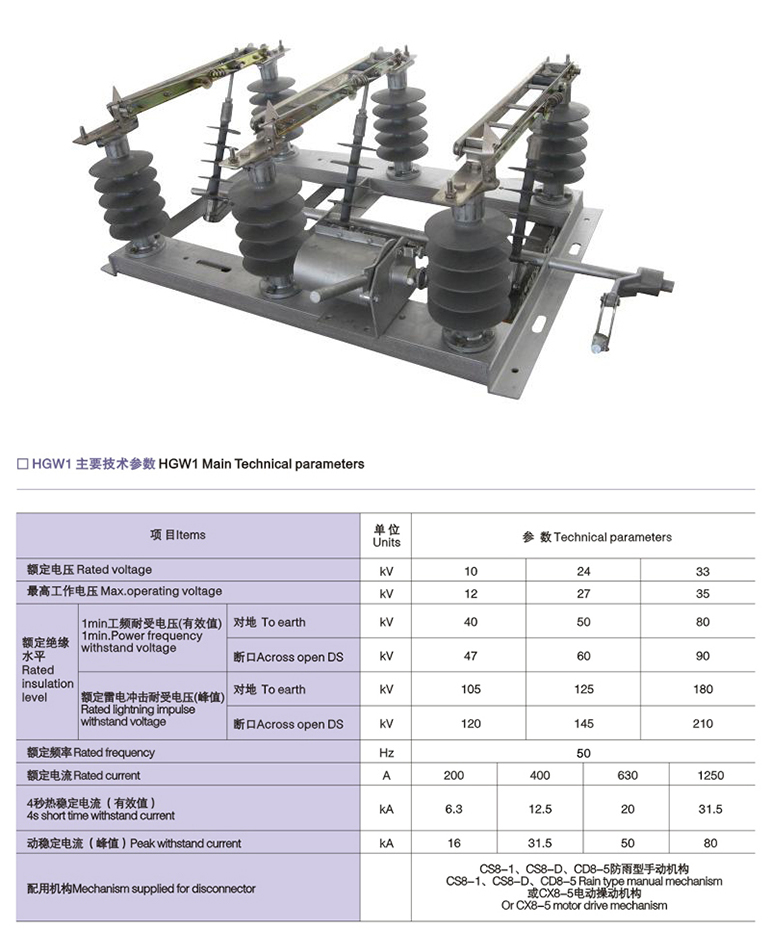 GW(F)□-12R/200-6.3型户外交流高压负荷隔离开关