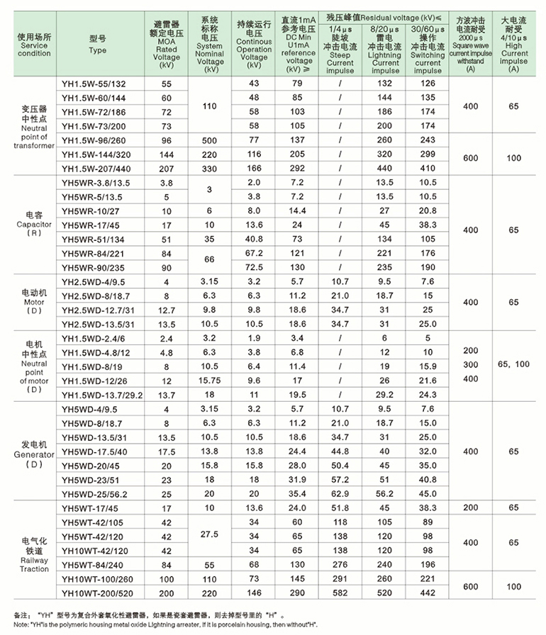 0.22-330kV交流系统用外套金属氧化锌避雷器