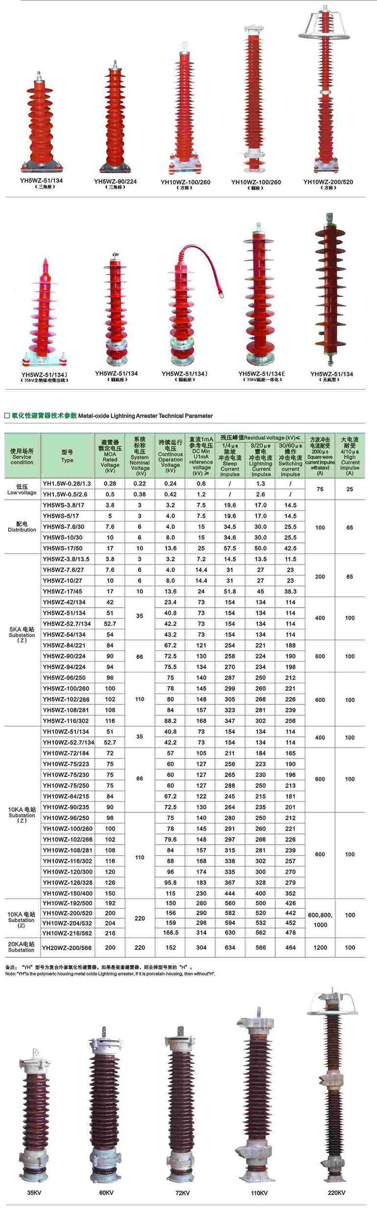 0.22-330kV交流系统用外套金属氧化锌避雷器