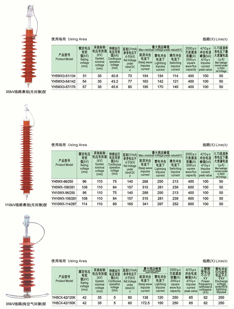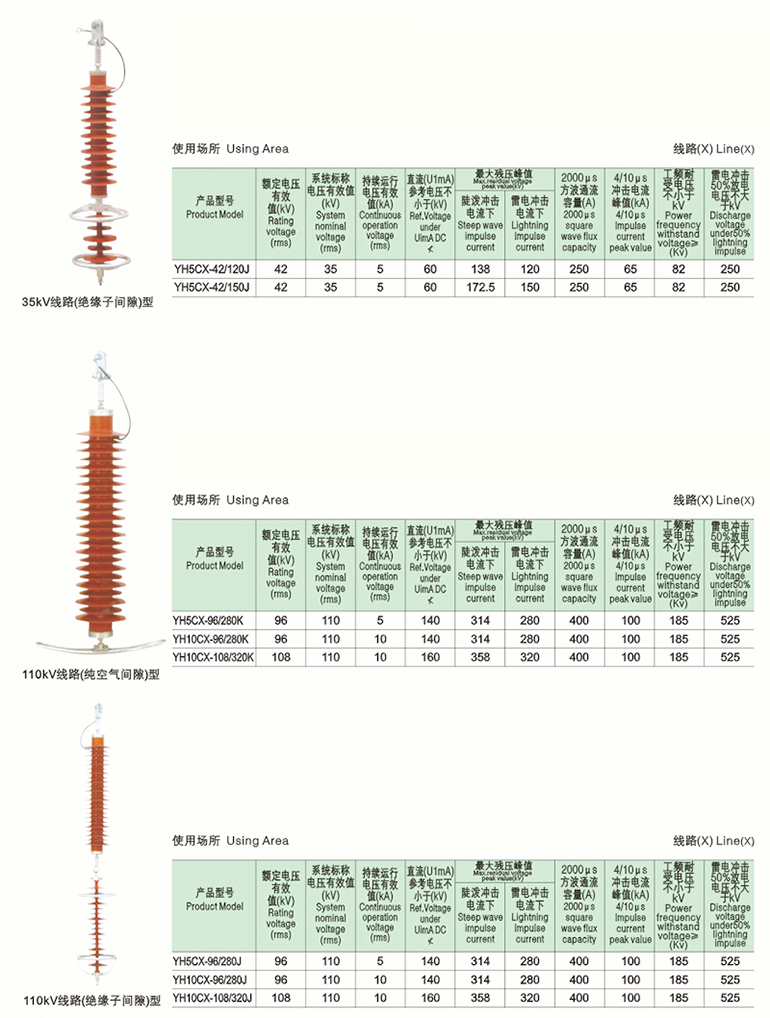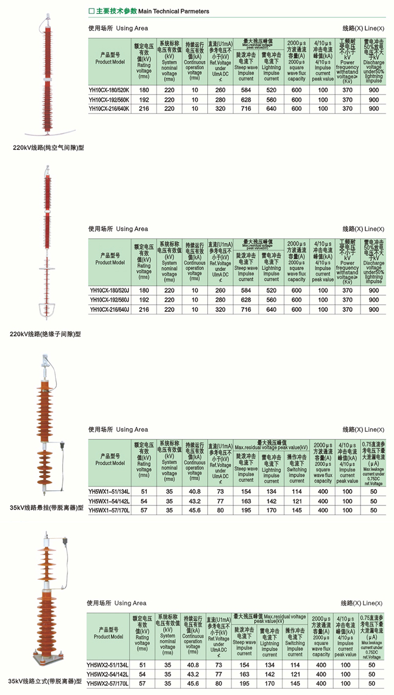 0.22-330kV交流系统用外套金属氧化锌避雷器